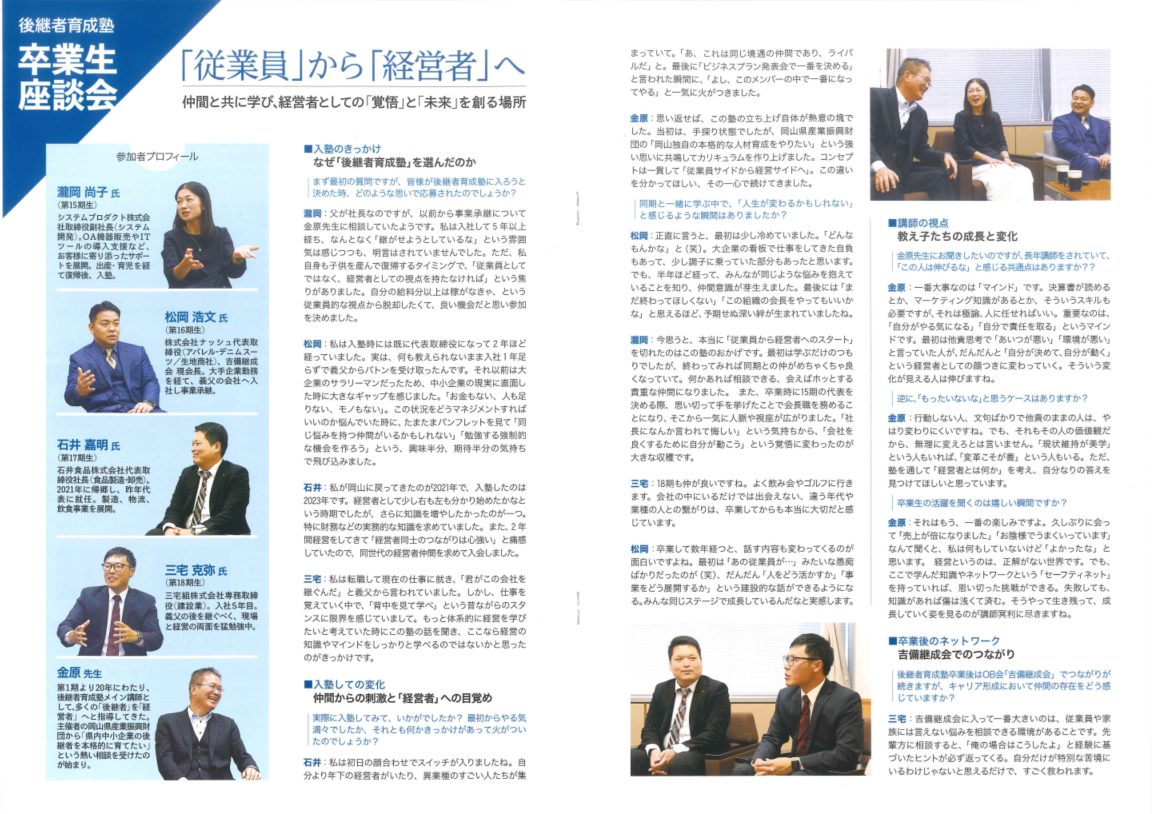 2025年12月 「後継者育成塾」パンフレットに副社長の記事が掲載されました。